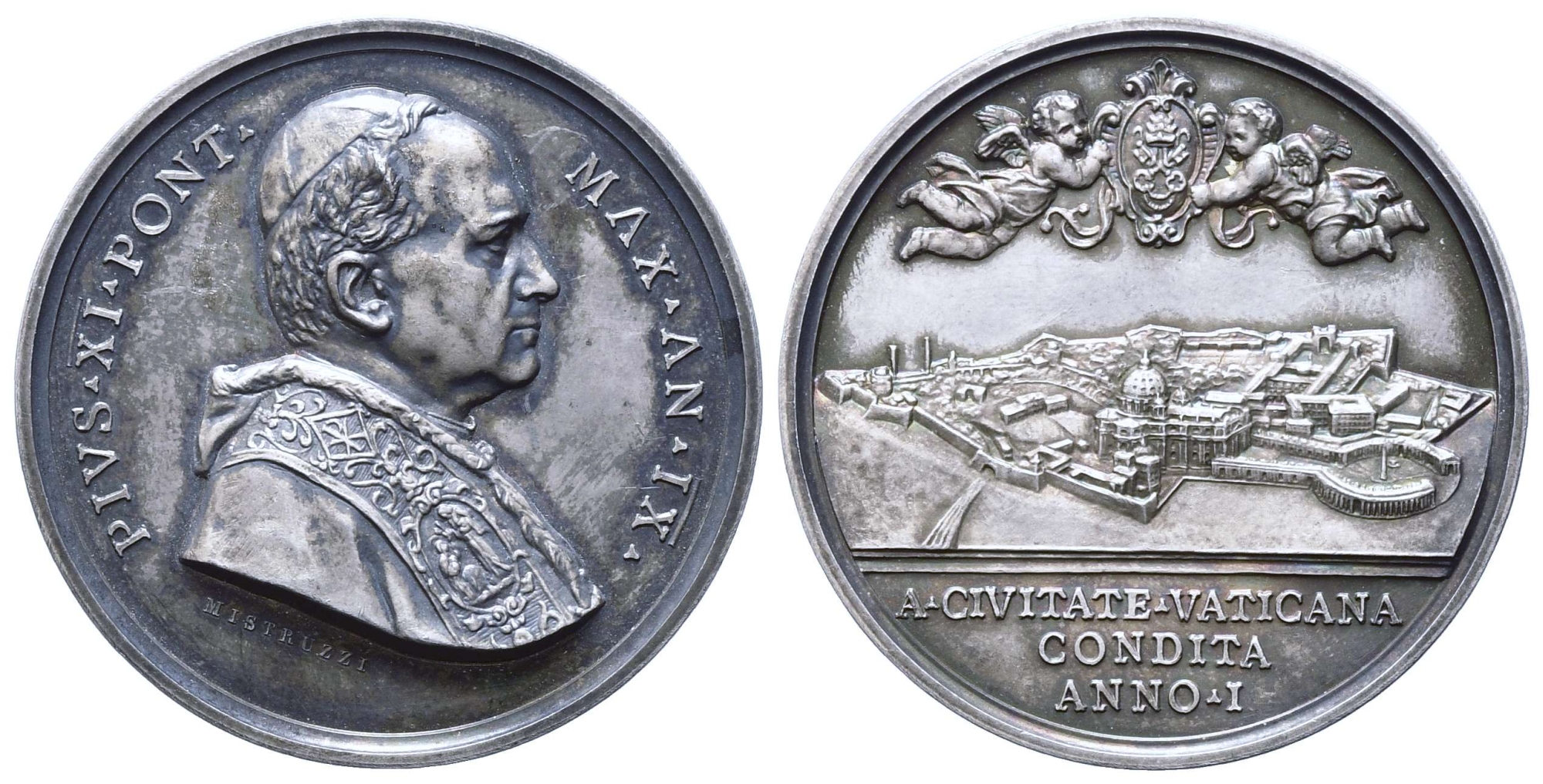 CITTA' DEL VATICANO. Pio XI (1922-1939). Opus Mistruzzi. Medaglia annuale 1930. Anno IX. Per il primo anniversario della costituzione della Città del Vaticano. Ag 44 mm. FDC