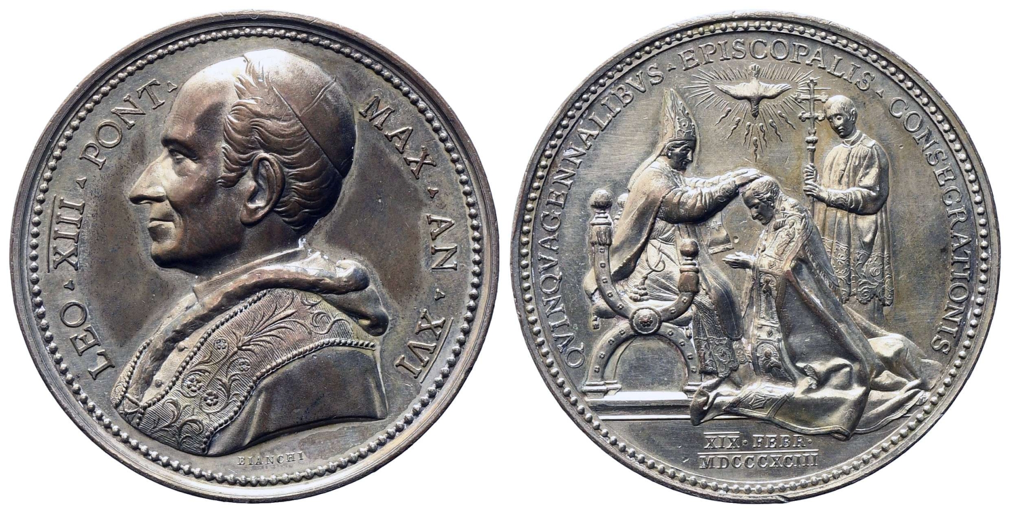 ROMA. Leone XIII (1878-1903). Medaglia per il 50° anniversario della consacrazione episcopale di Leone XIII nel 1893. Anno XVI. Opus Bianchi. Ag (43,4 mm – 41,92 g). Bart. E893 (MP136599). qFDC