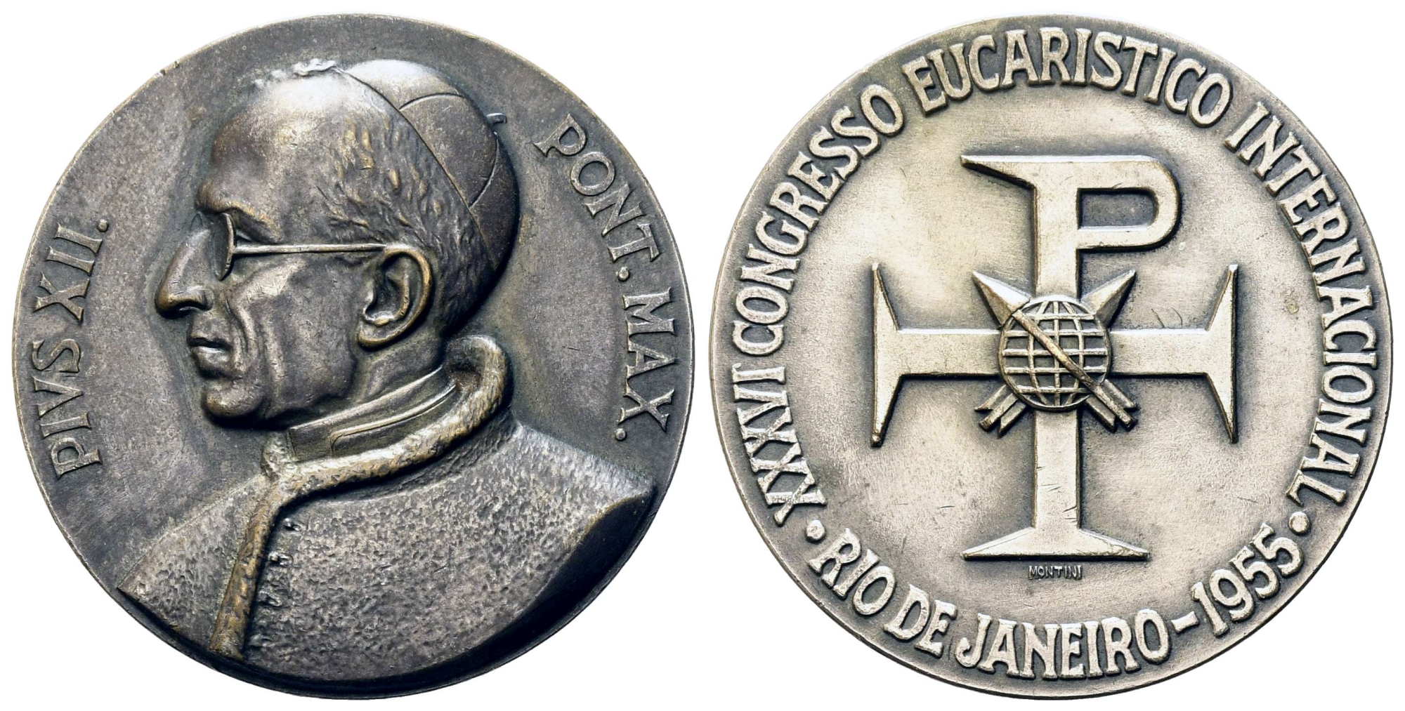 CITTA' DEL VATICANO. Pio XII (1939-1958) Medaglia 1955. Ag (50 mm). PIVS XII PONT MAX. Busto a sn. R/ XXXVI CONGRESSO EUCARISTICO INTERNACIONAL RIO DE JANEIRO 1955. R. SPL