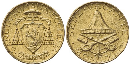 CITTA' DEL VATICANO. Sede Vacante 1963. Medaglia 1963 Camerlengo Cardinale Benedetto Aloisi Masella. Ae dorato (26.5mm, 12.13g). Cf. Boccia 125. MB