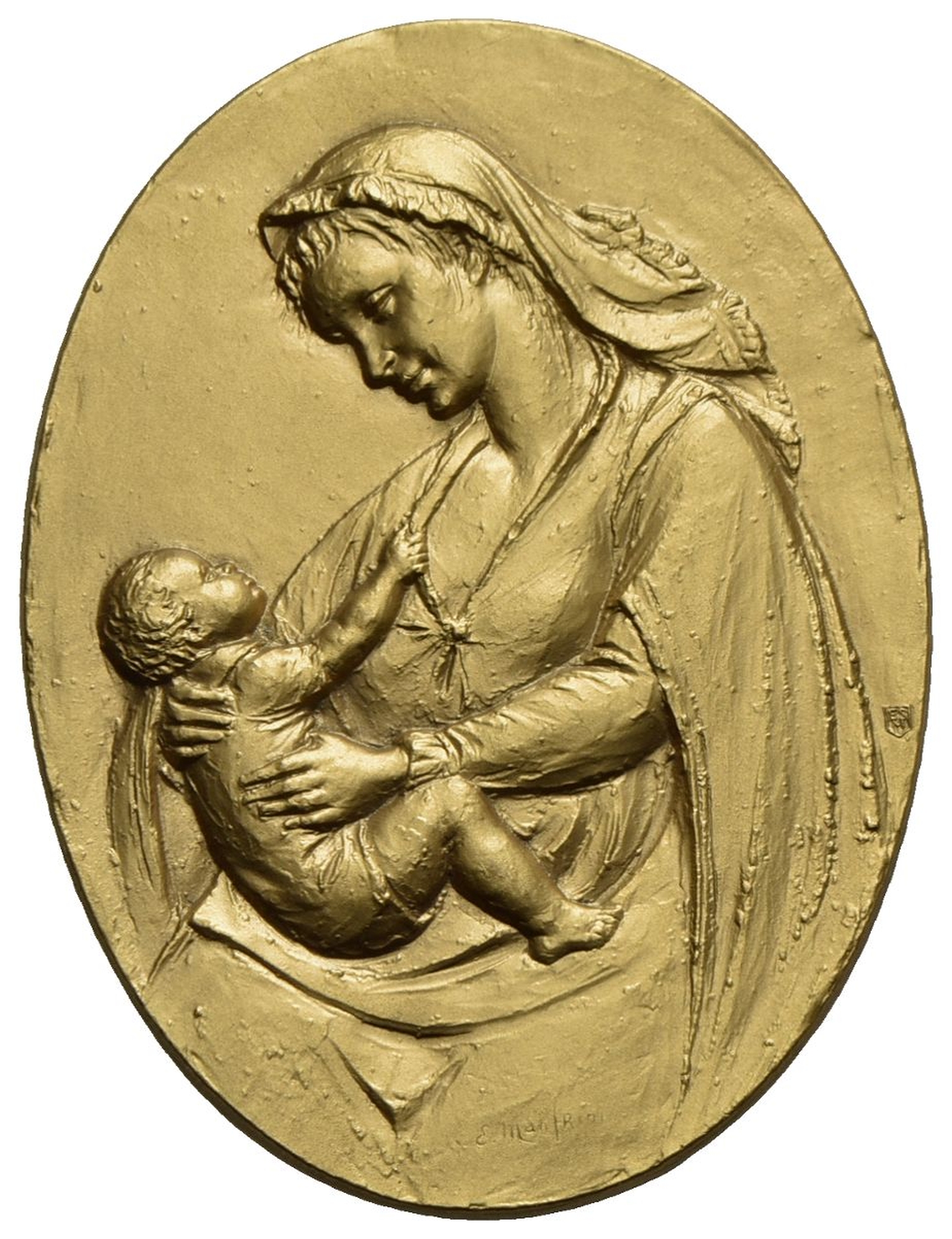 CITTA' DEL VATICANO. Paolo VI (1963-1978). Medaglia La Beata Vergine col Bambino. Ae dorato uniface. Ovale 60x80 mm. In astuccio originale con stemma pontificio. FDC