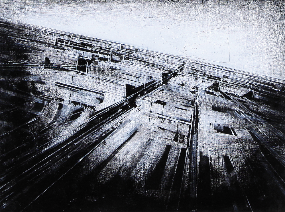JONATHAN GUAITAMACCHI Londra 1961 Vista, 2002 olio su carta applicata su tela cm. 35x40, firma, titolo e anno al retro, dichiarazione d'autenticità dell'artista su foto.