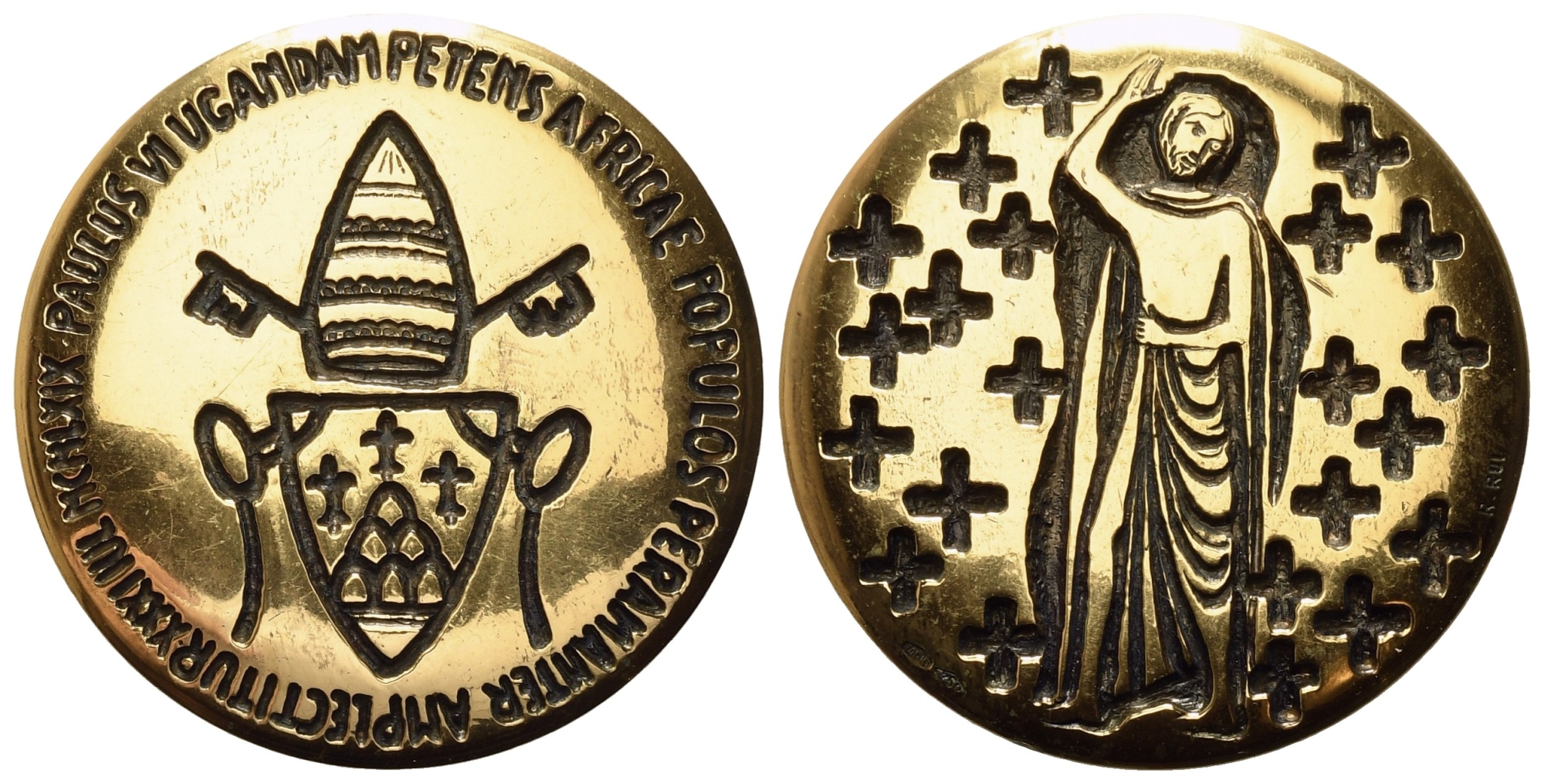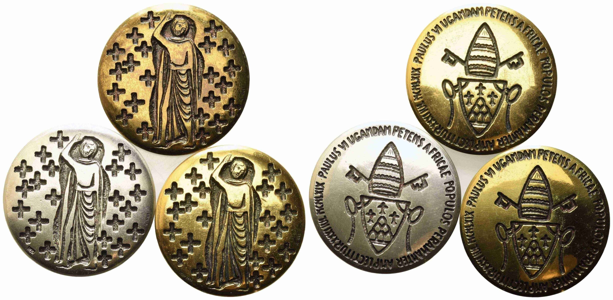 CITTA' DEL VATICANO. Paolo VI (1963-1978). Trittico di medaglie Straordinarie 1969 Viaggio in Uganda (Au 68,63 g; Ag 47,48 g; Ae 39,42 g). FDC