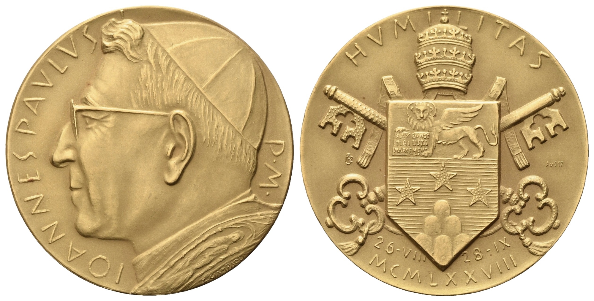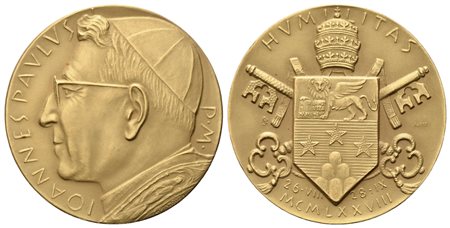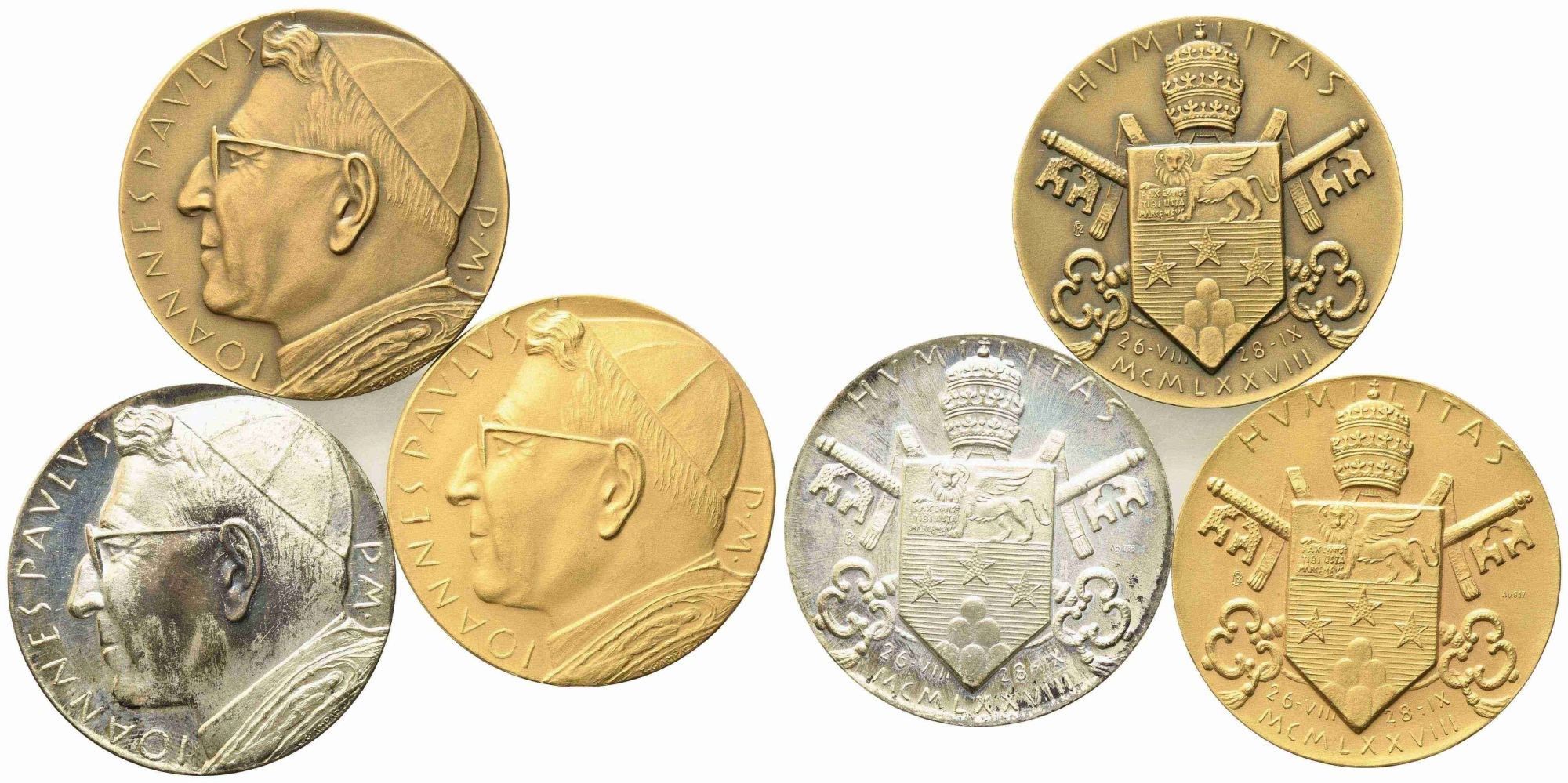 CITTA' DEL VATICANO. Giovanni Paolo I (26 Agosto - 28 Settembre 1978). Trittico di medaglie 1978 (Au 49,81 g; Ag 41,24 g; Ae 33,87 g). FDC