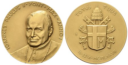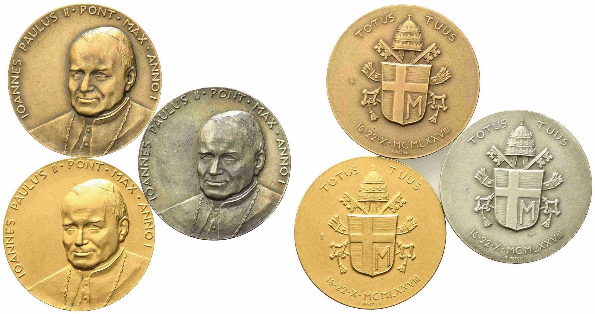 CITTA' DEL VATICANO. Giovanni Paolo II (1978-2005). Trittico di medaglie Anno I 1978 (Au 65,08 g; Ag 42,95 g; Ae 35,63 g). FDC