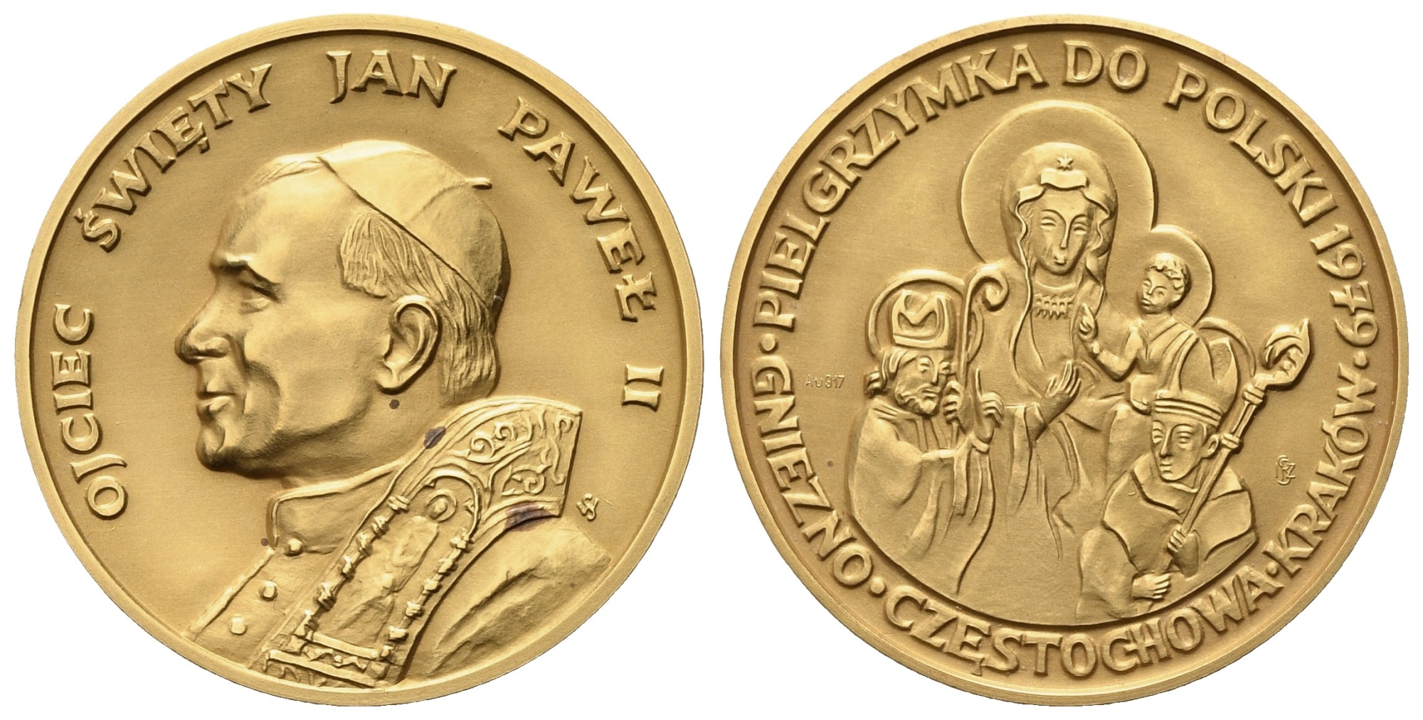 CITTA' DEL VATICANO. Giovanni Paolo II (1978-2005). Trittico di medaglie 1979 Madonna di Czestochowa (Au 40,23 g; Ag 27,81 g; Ae 26,11 g). FDC