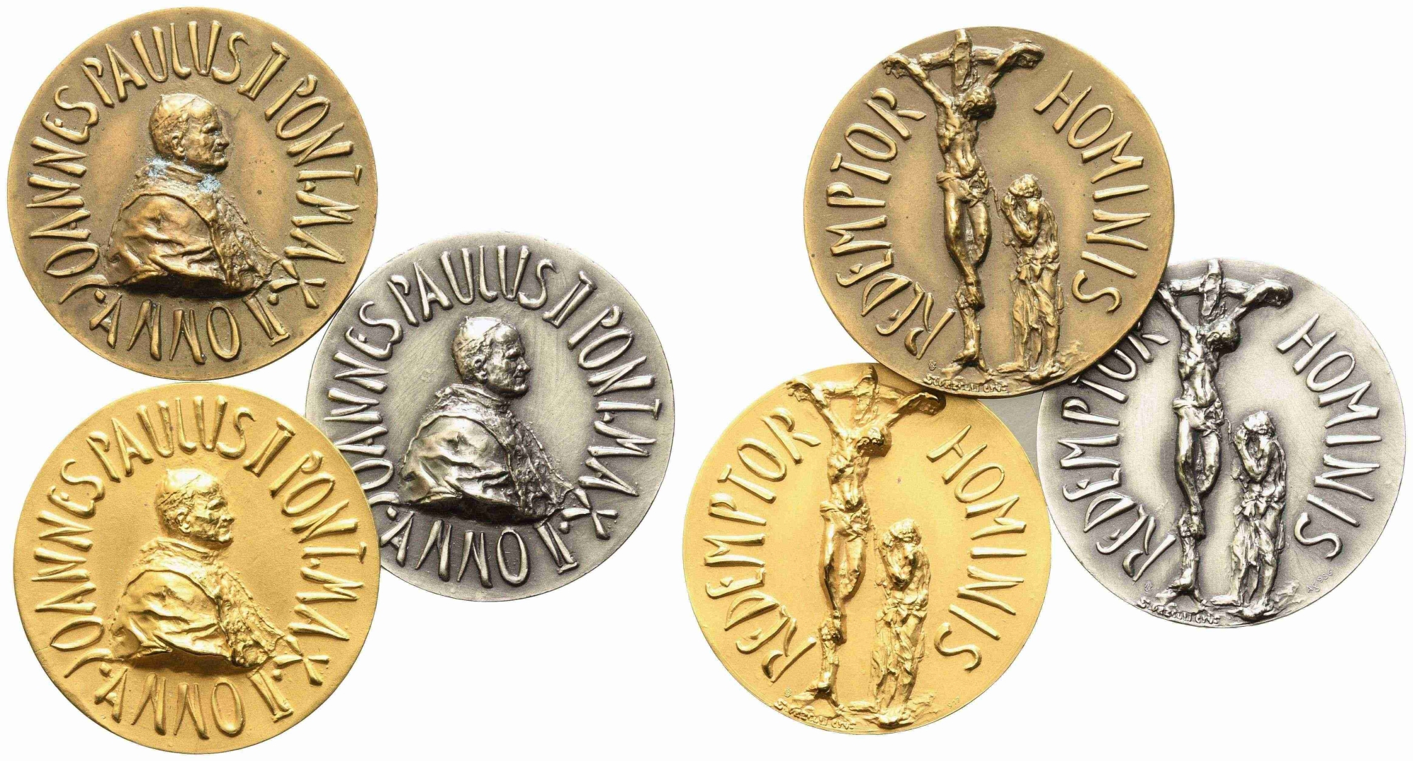 CITTA' DEL VATICANO. Giovanni Paolo II (1978-2005). Trittico di medaglie Anno II (Au 49,79 g; Ag 39,98 g; Ae 35,06 g). FDC