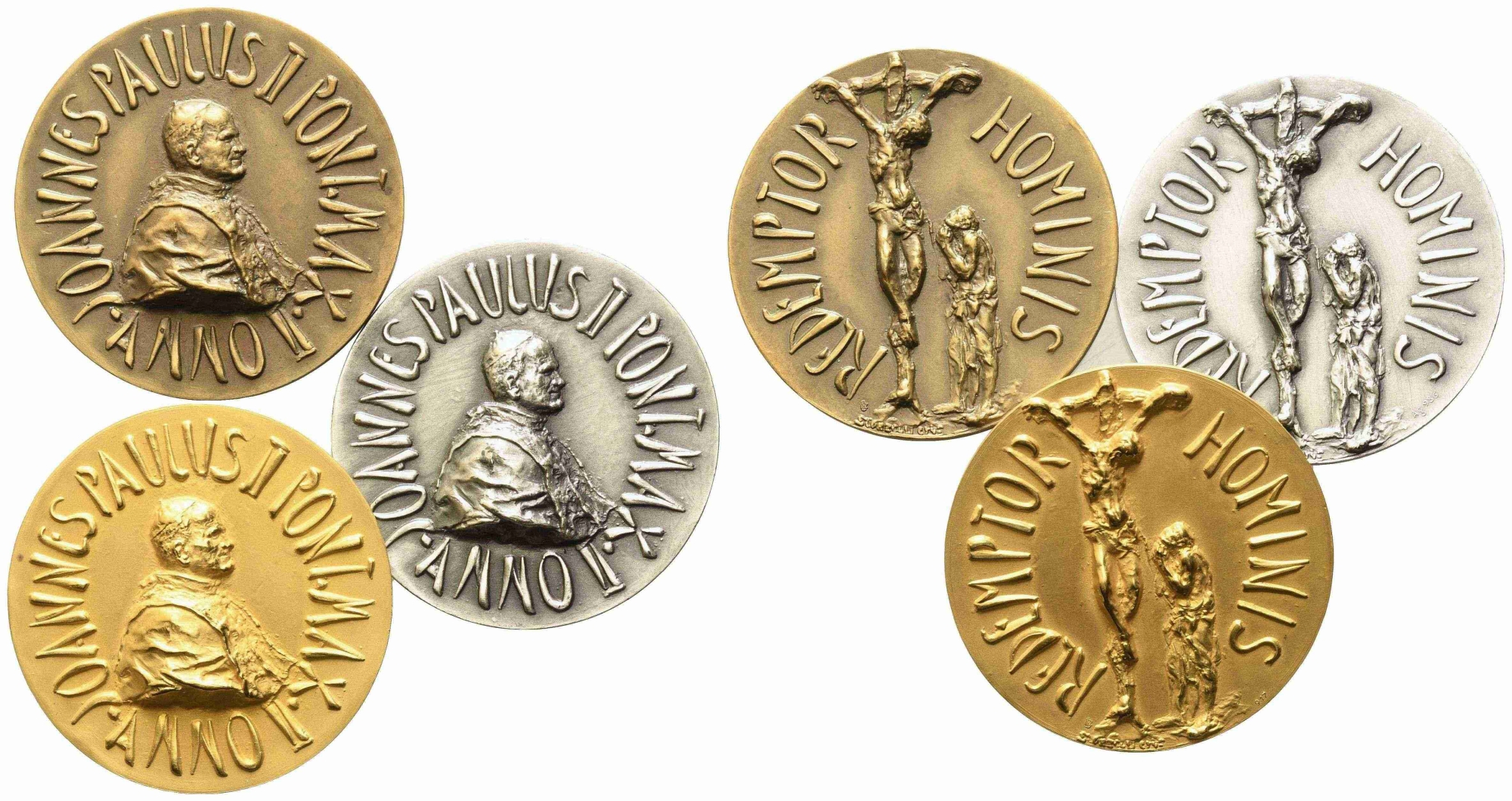 CITTA' DEL VATICANO. Giovanni Paolo II (1978-2005). Trittico di medaglie Anno II (Au 50,58 g; Ag 40,48 g; Ae 35,47 g). FDC