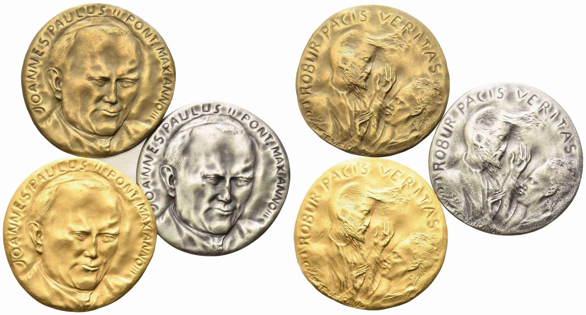 CITTA' DEL VATICANO. Giovanni Paolo II (1978-2005). Trittico di medaglie Anno III (Au 54,76 g; Ag 30,28 g; Ae 25,04 g). FDC