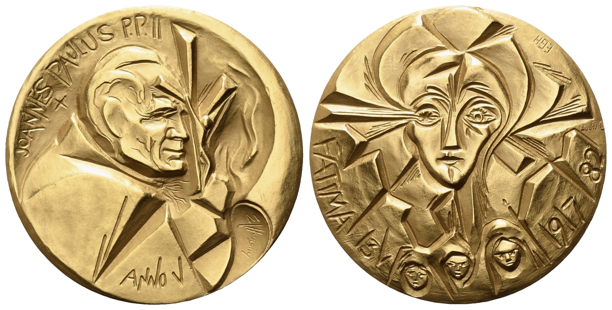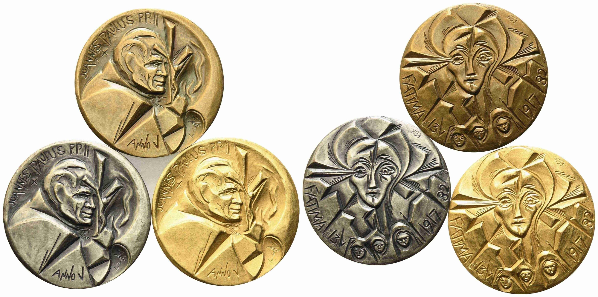 CITTA' DEL VATICANO. Giovanni Paolo II (1978-2005). Trittico di medaglie Anno V (Au 64,20 g; Ag 47,37 g; Ae 39,96 g). Con cofanetto originale. FDC