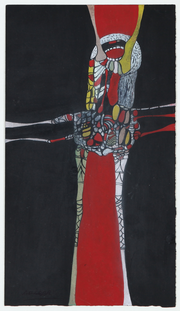 AGENORE FABBRI Barba (Pt) 20/05/1911 - Savona 07/11/1998 Personaggio lunare tempera su carta cm. 35x20, firma in basso a sinistra e al retro, certificato di provenienza della Galleria Allegrini Arte Contemporanea (BS) allegato.