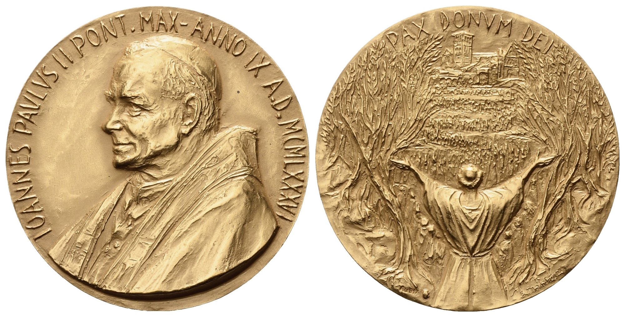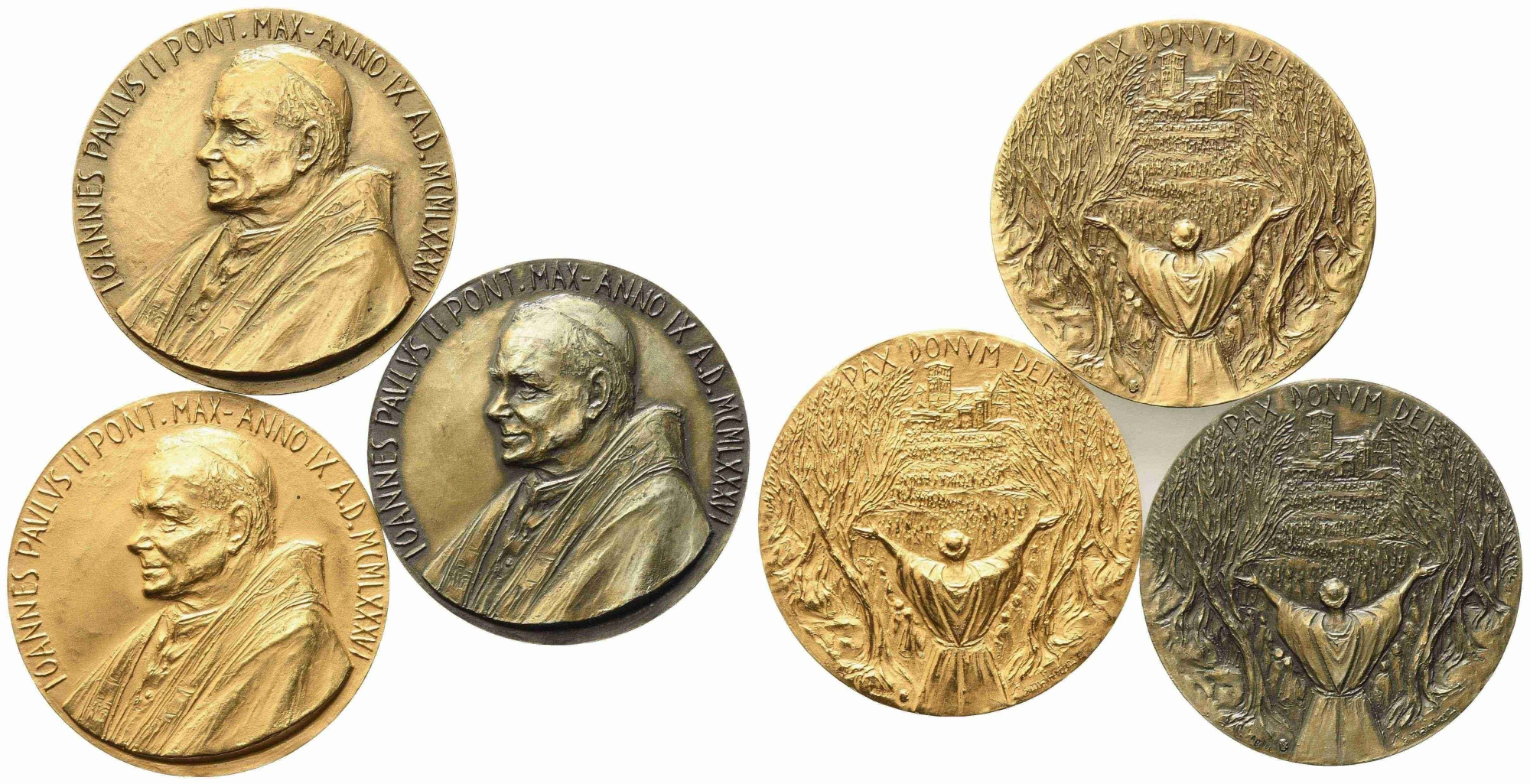CITTA' DEL VATICANO. Giovanni Paolo II (1978-2005). Trittico di medaglie Anno IX (Au 54,14 g; Ag 38,13 g; Ae 38,49 g). Con cofanetto originale. FDC