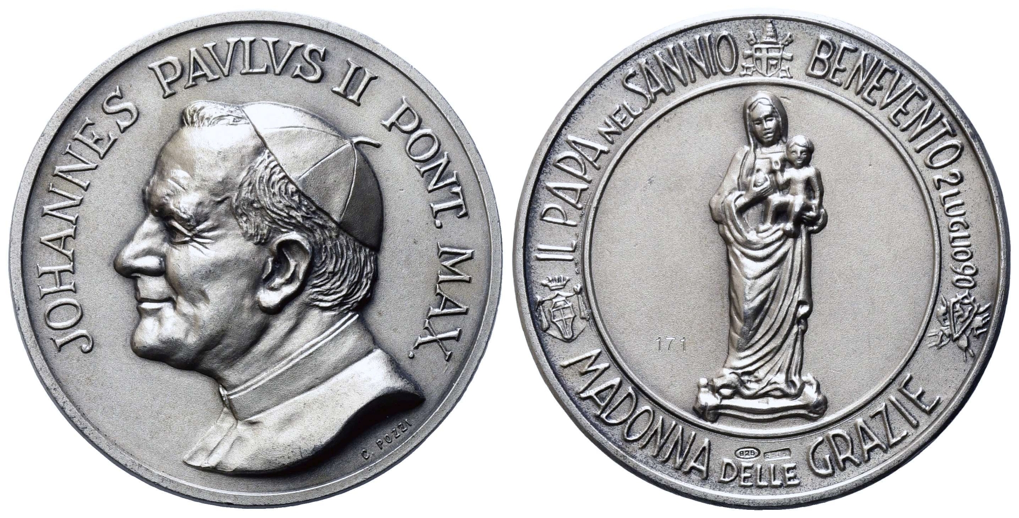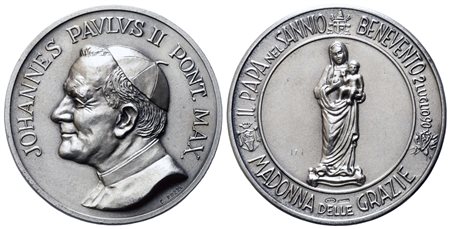 CITTA' DEL VATICANO. Giovanni Paolo II (1978-2005). Medaglia 1990 Il papa nel Sannio. Benevento. Madonna delle Grazie. Ag (50,40 mm – 52,34 g). FDC
