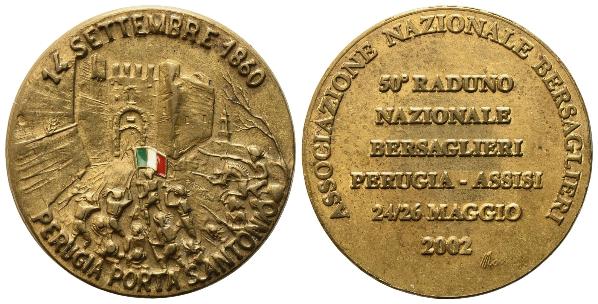 PERUGIA. Medaglia 50° raduno nazionale Bersaglieri Perugia-Assisi 2002. Ae...