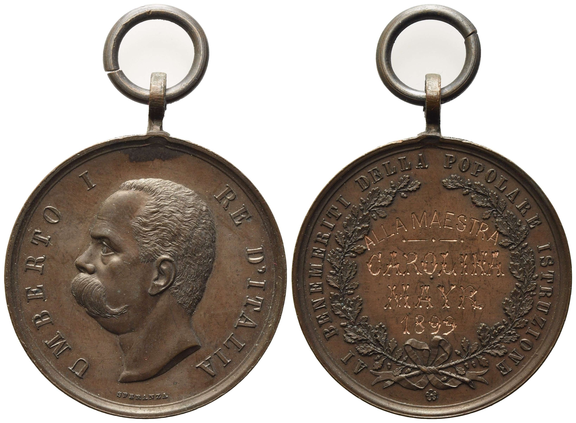 REGNO D'ITALIA. Umberto I (1878-1900). Medaglia 1899 ai benemeriti della educazione popolare del Ministero d'Istruzione Pubblica. Opus F. Speranza. Ae finemente incisa (36 mm). qFDC