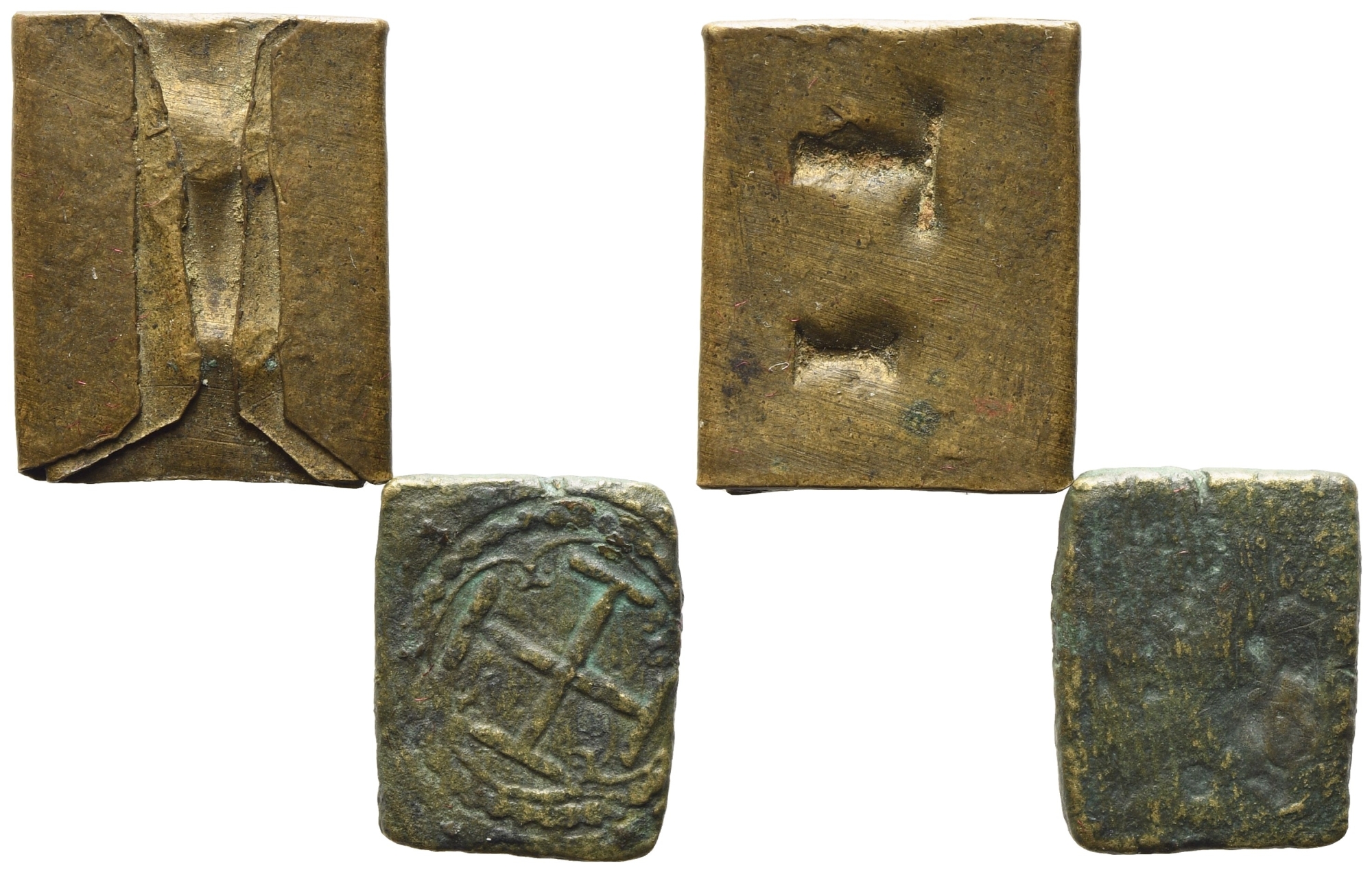 PESI MONETALI. Interessante lotto di due rari pesi monetali: il primo con croce potenziata (2,27 g) ed uno siciliano con sigle T.I. 1 tari? (2,24 g). BB.