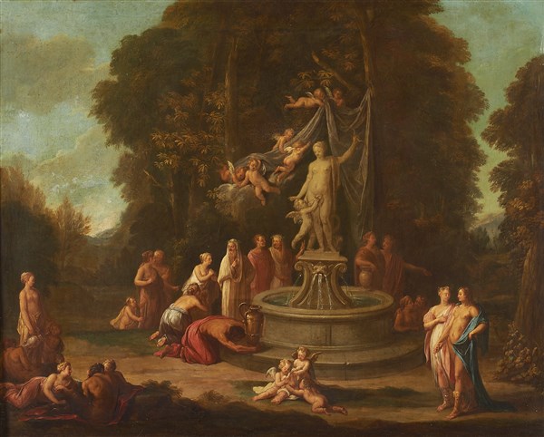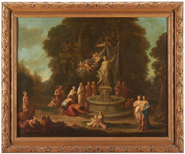 Artista francese del secolo XVIII Offerta a Venere Olio su tela, cm 65x81,5 I