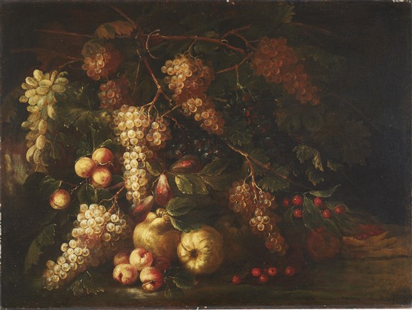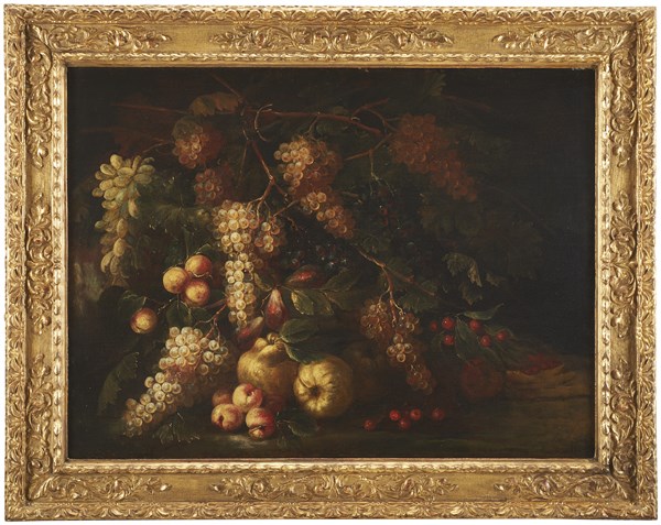 Giuseppe Ruoppolo Composizione con frutta all'aperto Olio su tela, cm 70x95 In