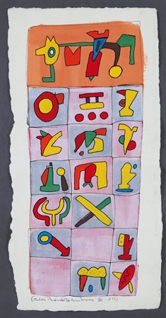 CARLOS PUENTE Santander (Spagna) 1950 Senza titolo, 1992 tecnica mista su carta a mano cm. 49x24, firma e anno in basso al centro.