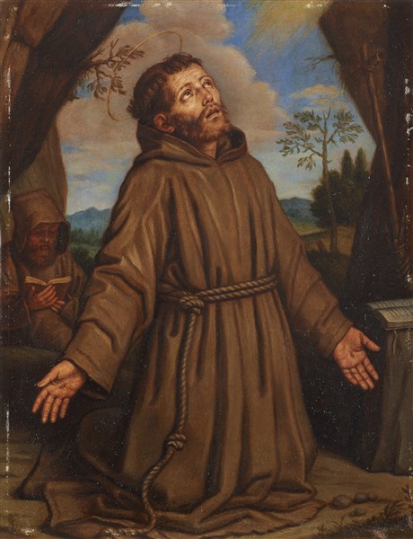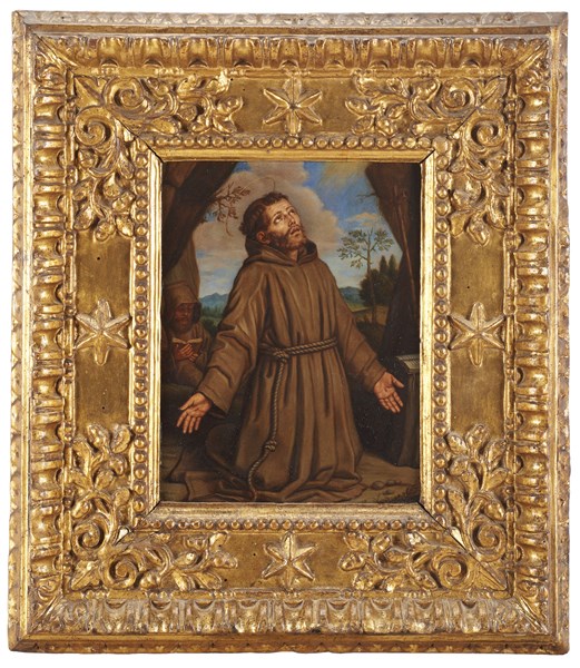 Scuola emiliana del secolo XVII San Francesco Olio su rame, cm 26x20,5 In c