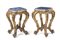 Coppia di gueridon in legno intagliato e dorato a mecca con gambe mosse terminanti a ricciolo e crociera di raccordo. Italia Meridionale, secolo XVIII. Piano sagomato lastronato in pietra dura di epoca successiva (cm 40x58,5x39) (difetti)