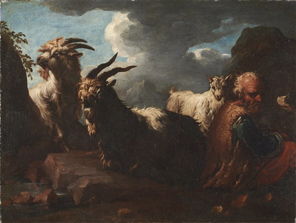 Cerchia di Rosa da Tivoli Pastore con armenti Olio su tela, cm 48,5x64,5 In