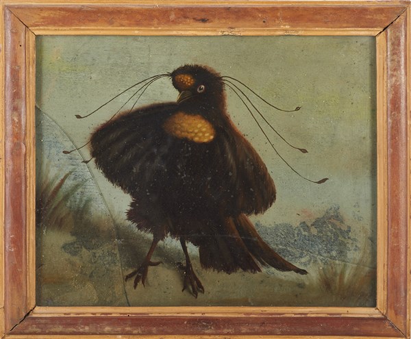Arte del secolo XVIII. Quattro verre peint raffiguranti volatili esotici (cm 21x26) In cornice (lievi difetti, uno rotto)