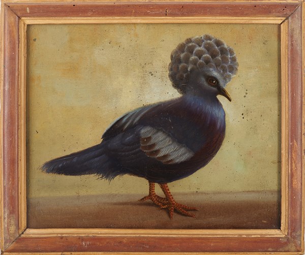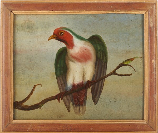 Art of the 18th century. Four verre peint depicting exotic birds (cm 21x26) In frame (minor defects, one broken)