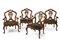 Gruppo di quattro poltrone in noce con schienale traforato e intagliato a volut