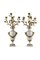 Coppia di candelieri a quattro fiamme a forma di vaso in marmo con portacandele