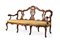 Due divani da portego a tre posti in noce con schienale a cartelle traforate, l