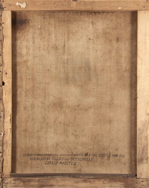 Inscribed on the back "Andreas Romagnanus I obiit die 13 martii 1705 etatis ann 80/ Bernanrdini filius ac Petronille/ Capris maritus"