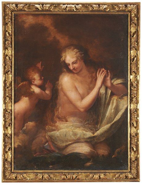 Scuola veneta del secolo XVII Maddalena penitente Olio su tela, cm 130x97 I