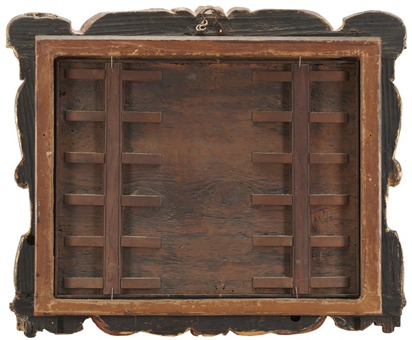 In Sansovino style frame in carved and gilded wood with volutes and cherubs (defects and restorations)