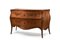 Commode a due cassetti di forma bombata, lastronata in bois de rose e noce, filettata in bosso a decori geometrici. Piano, fronte e fianchi centrati da stemmi intarsiati in legni vari. Napoli, secolo XVIII (cm 143x92x63) (difetti e mancanze)
