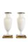 Coppia di vasi a balaustro in vetro opaline su base quadrata in argento dorato, bordura del collo in metallo dorato. Secolo XIX (h. cm 23) (lievi difetti)