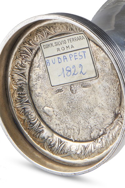 Silver coffeepot. Silversmith A. Giergl. Collection label at bottom. Budapest, 1822 (h. cm 25,5) (g gross 810)