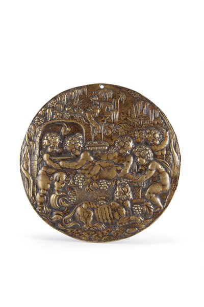 Circle of the Lencker (Augsburg). Bacchanal, cast bronze plaque (d. cm 19,5)