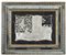 Venetian mirror with polychrome glass frame, mirror engraved with genre scene (cm 62x52) (defects)