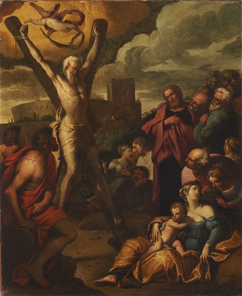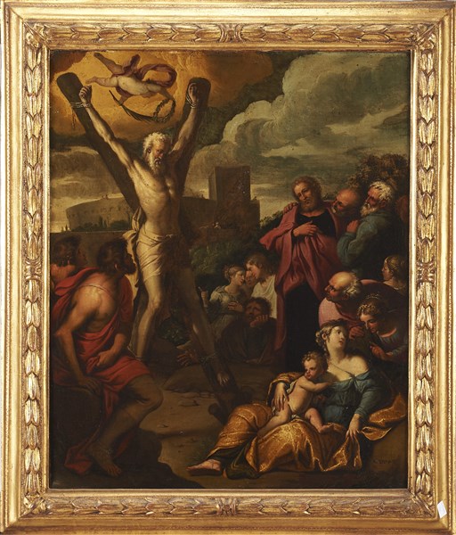 Scuola del secolo XVIIIMartirio di Sant'AndreaOlio su tela, cm 65x53In c