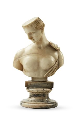 Busto di Psiche, scultura in marmo su base circolare. Da un modello classico (h. tot cm 64,5) (difetti)