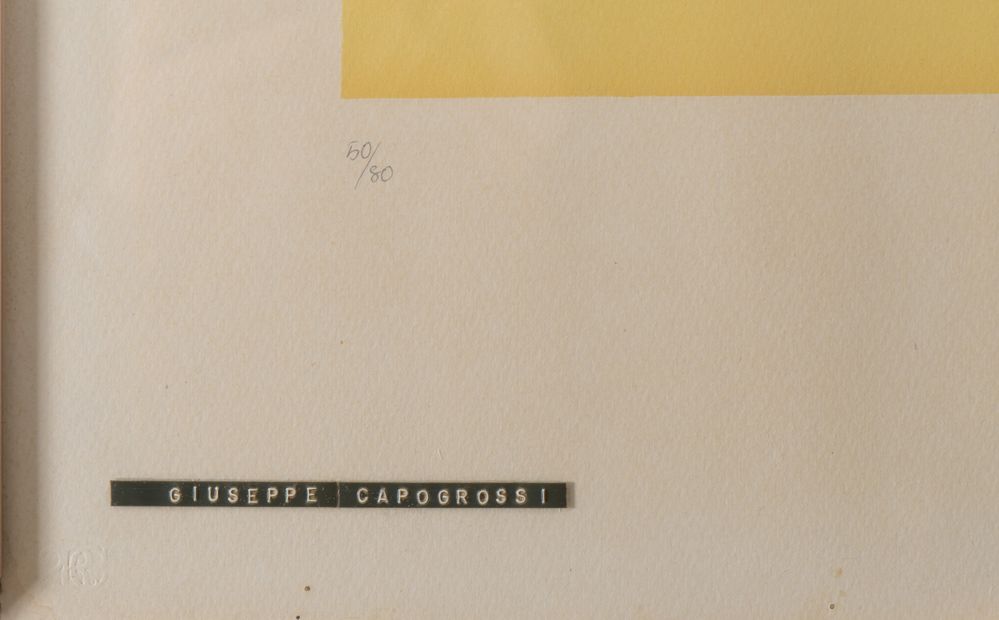 Opera firmata in basso a destra Capogrossi. Reca numeri di tiratura in basso a sinistra 50/80.