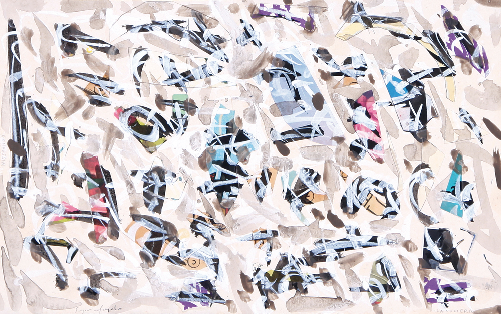 SERGIO DANGELO Milano 1932 La voliera, (1960) tempera, smalto e collage su...