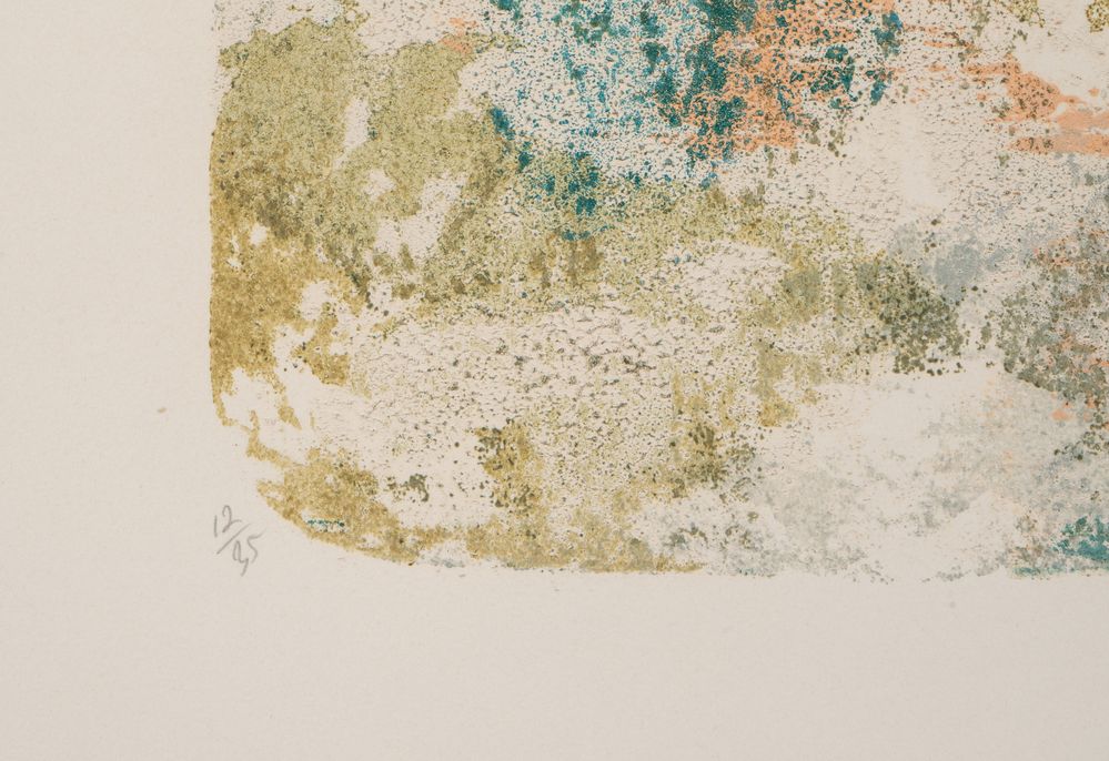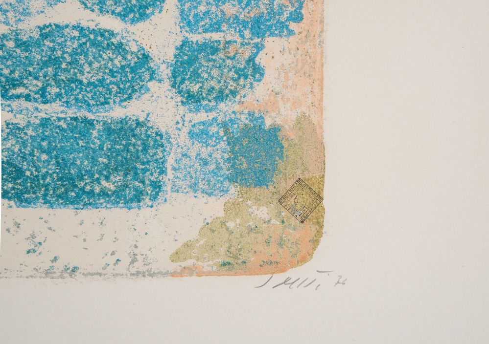 BRUNO SAETTI (Bologna 1902 - 1984) "Sole rosa", 1974. Litografia ad affresco a colori su carta. Lastra: cm 76x102; foglio: cm 99x140,5. Opera firmata e datata in basso Saetti '74. Reca numeri di tiratura in basso a sinistra 12/35. Reca timbro in basso a destra del litografo G.C. Contestabile, Bologna.
