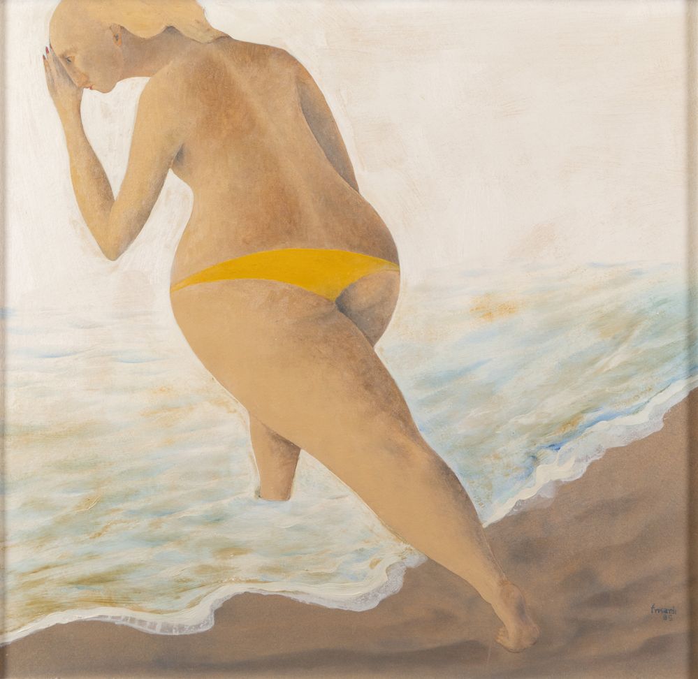 CARLO FRISARDI (Roma 1949) "Senza titolo", 1985. Olio su compensato. Cm 65,6x67. Opera firmata e datata in basso a destra Frisardi '85. Opera accompagnata da autentica su fotografia con firma Carlo Frisardi in data 1986.