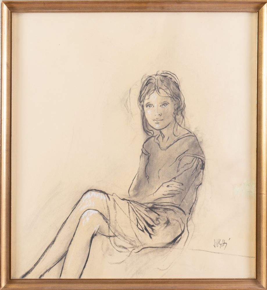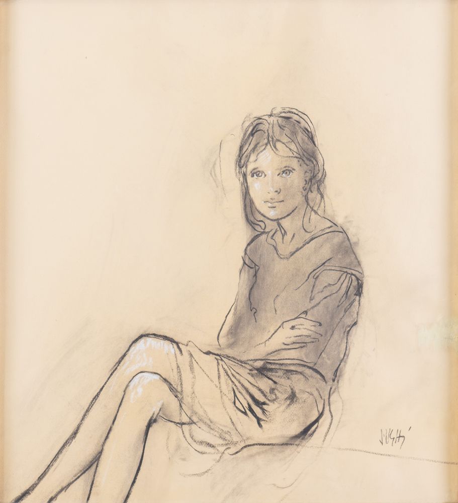 ALBERTO SUGHI (Cesena 1928 - Bologna 2012) "Giovane ragazza". Tecnica mista su carta. Cm 66,5x61,5. Opera firmata in basso a destra Sughi.