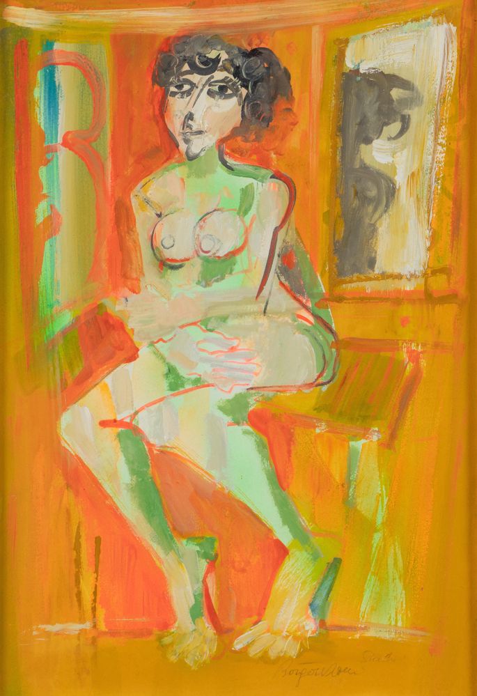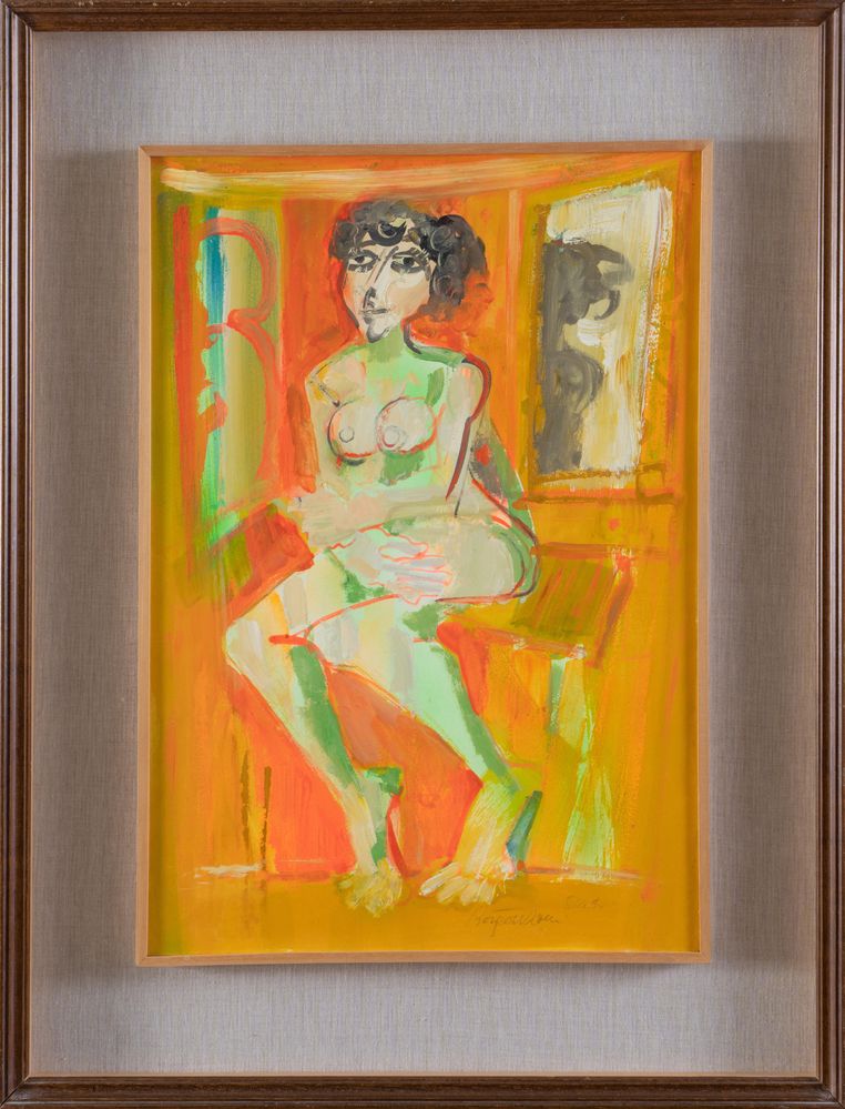 ALDO BORGONZONI (Medicina 1913 - Bologna 2004) "Studio", 1965. Olio su tela....