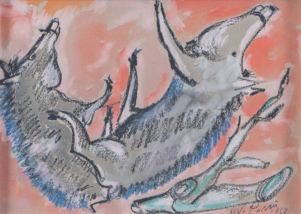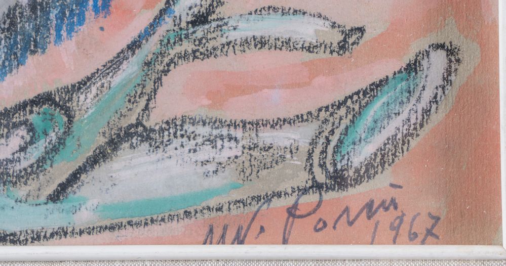 MARCO PORCU (1917 - 2001) "Senza titolo", 1967. Tecnica mista su carta. Cm 24,5x33,5. Opera firmata e datata in basso a destra M. Porcu 1967.