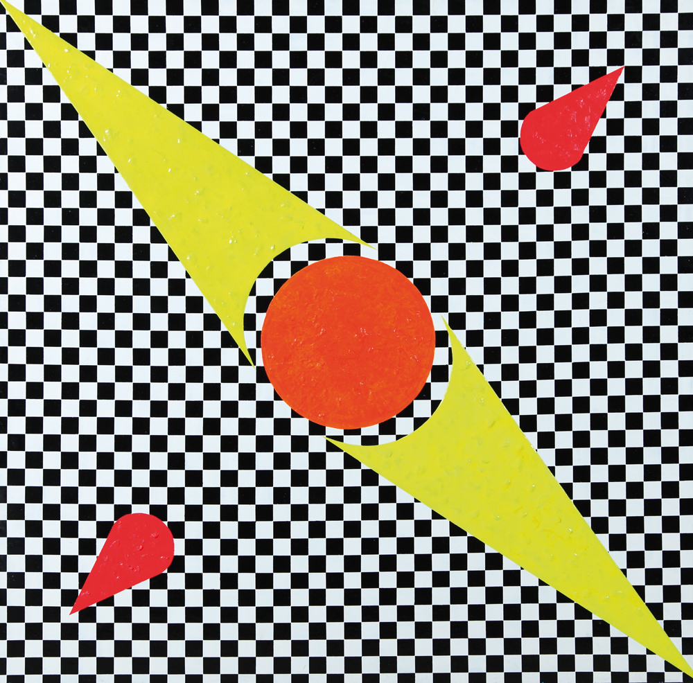 MASSIMO SALVADORI Casale Monferrato 17/11/1960 Senza titolo, 1995 smalti e carta su legno cm. 100x100, firma e anno al retro, dichiarazione d'autenticità dell'artista e Archivio Massimo Salvadori numero 0011 su foto, opera senza cornice, pubblicato sul catalogo della mostra "Massimo Salvadori, geometrie illusorie", tenutasi presso la Galleria Via Dei Mercati (VC) dal 28 marzo al 18 aprile 2010, pagina 19.