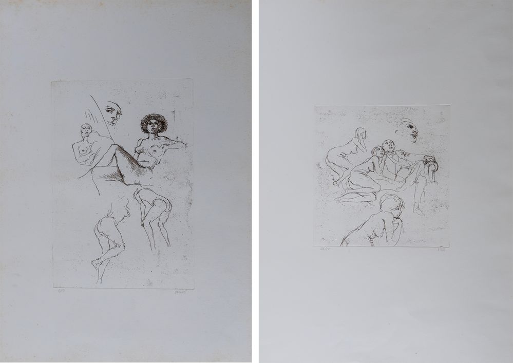 ALBERTO SUGHI (Cesena 1928 - Bologna 2012) Coppia di litografie a colori su carta. Cadauna di cm 70x50. Opere firmate in basso a destra Sughi. Recano numeri di tiratura in basso a sinistra 2/50 e 25/50.